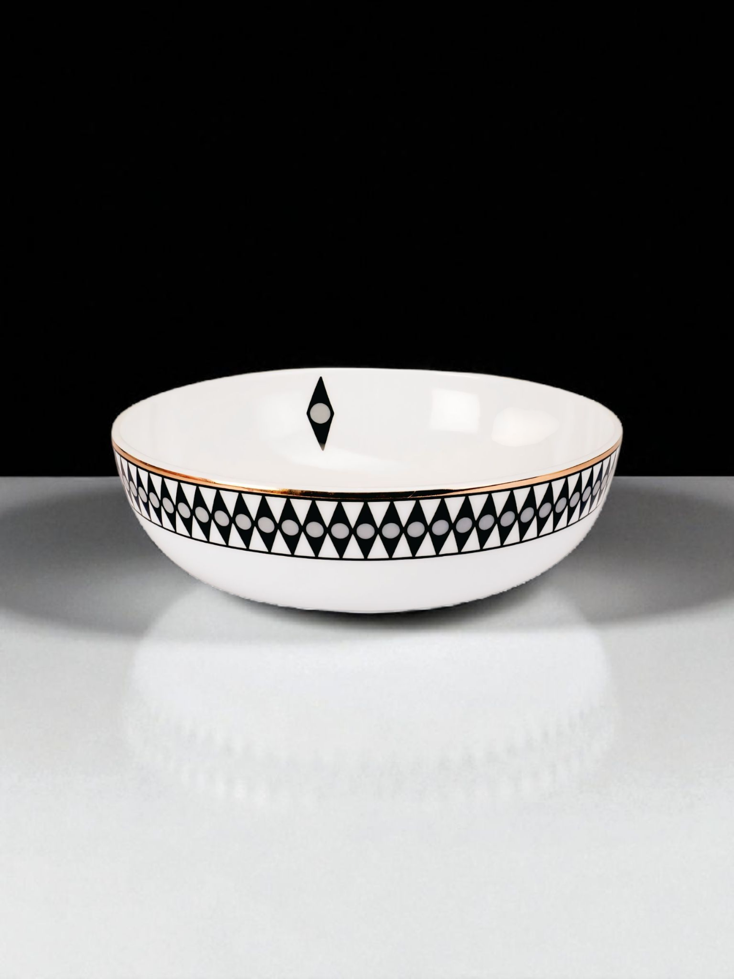 Spice up your dinnerware with this Bowls that is made from a sturdy material like bone china. It is designed with a printed surface and has a glazed finish in order to avoid the absorption of food.