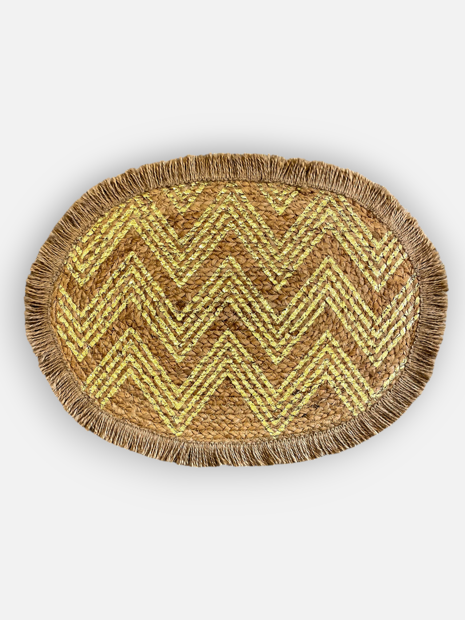 RIPPLED OVAL TABLE MAT GOLD & NATURAL (PER PC)