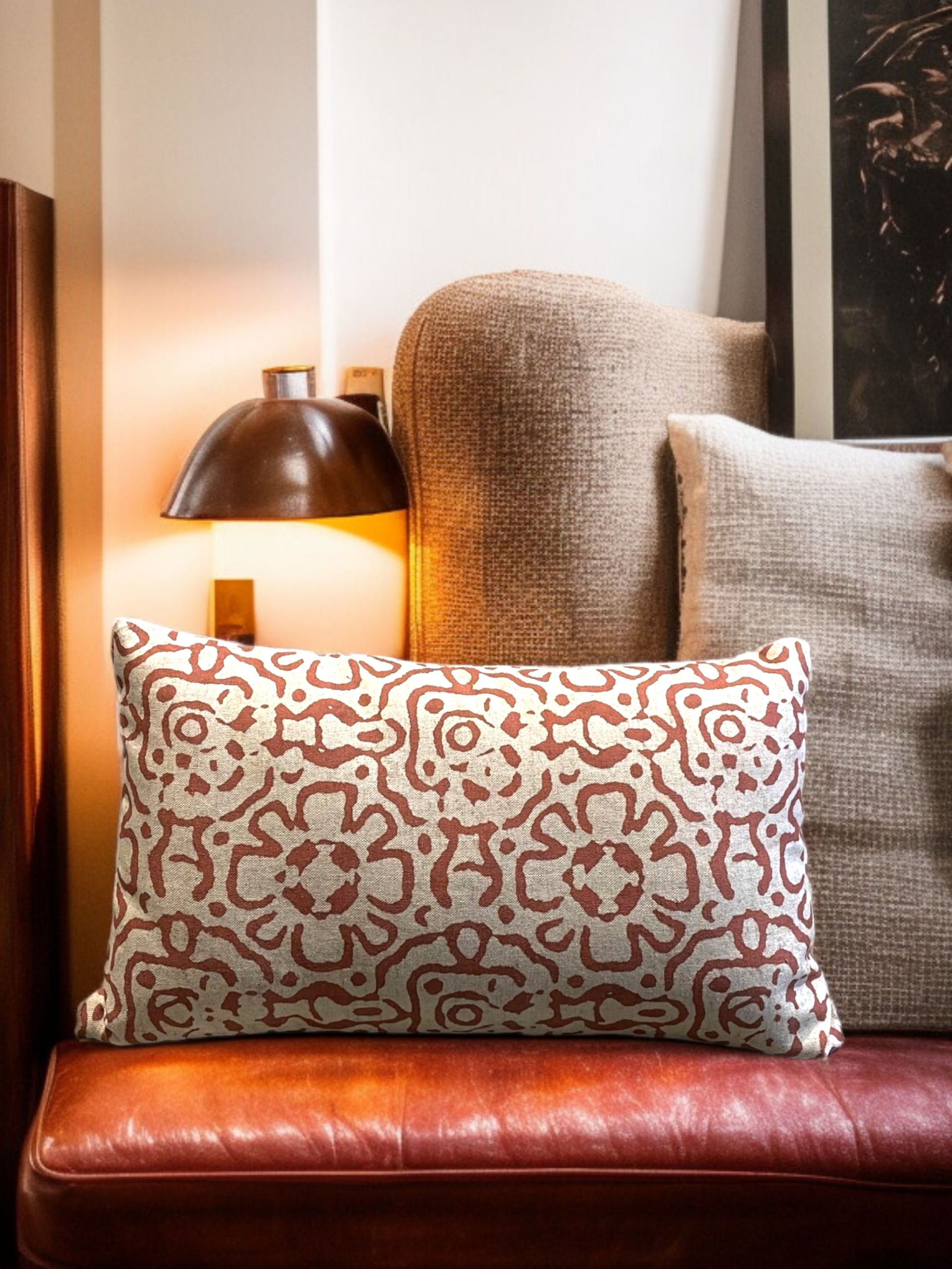 Effortlessly earthy and artistically abstract, this cushion features a terracotta-hued floral motif printed over a natural linen-toned base. The hand-drawn look of the pattern brings a raw elegance, perfect for contemporary, rustic, or Japandi-style interiors. Soft yet structured, it makes a sophisticated statement layered or styled solo. Let your space speak with texture and tone.