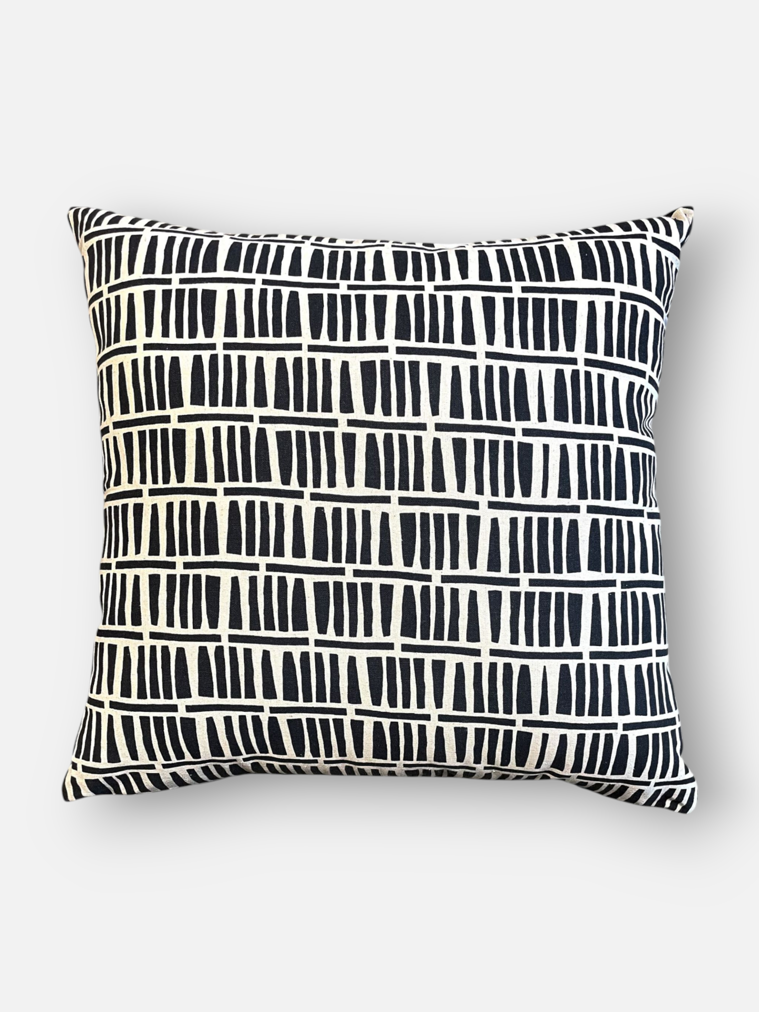 Discover a new rhythm in design with Delta cushion, a cushion that transforms minimalism into modern art. Its hand-rendered black tapered lines form a mesmerizing grid on a soft ivory, perfect for elevating neutral spaces with a bold graphic twist. Whether styled solo or layered with textures, this cushion creates depth and movement without overpowering. An artful touch for the discerning decorator.