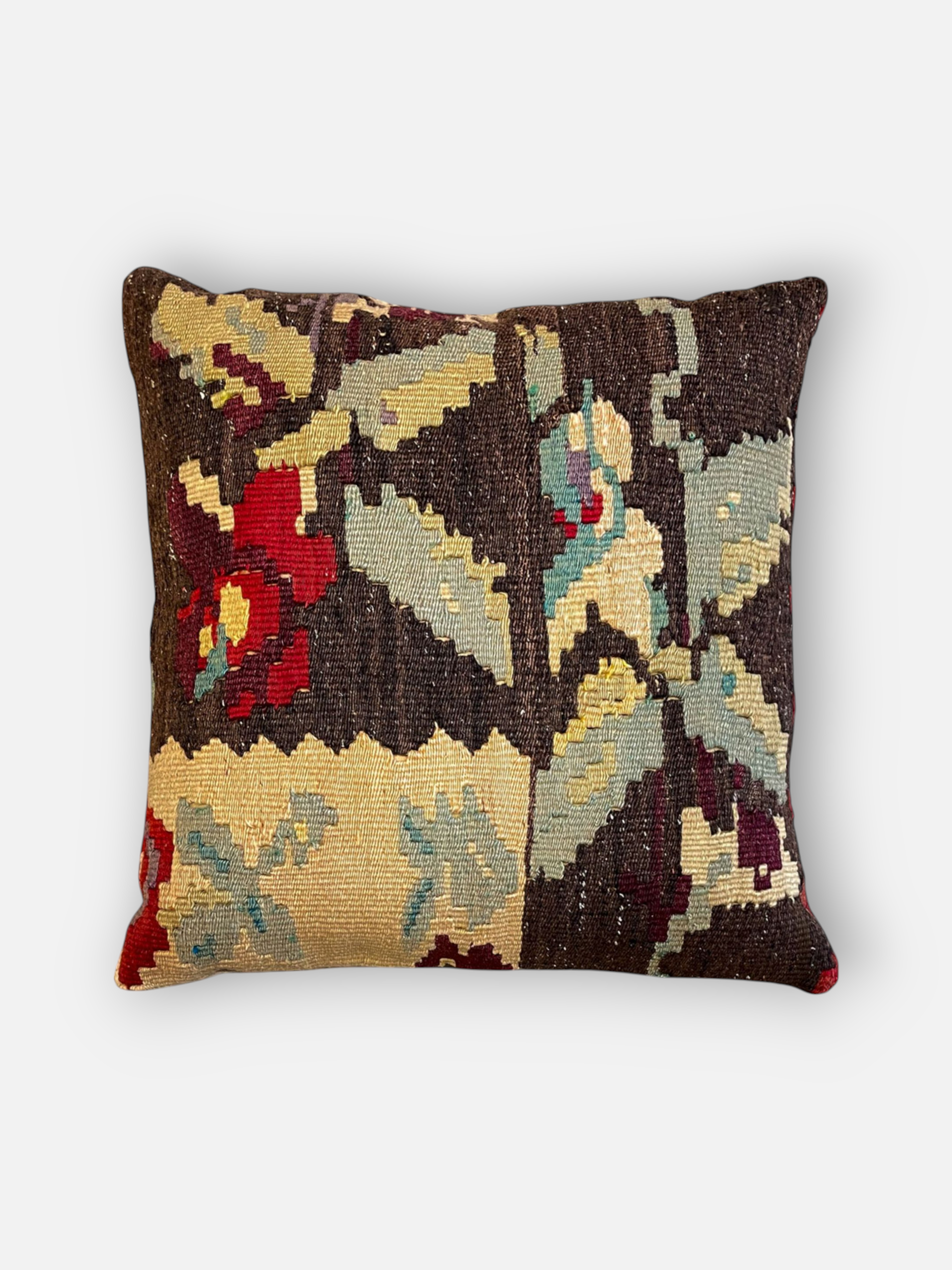 Add vintage-inspired drama to your space with the Rayana Earth Cushion. Deep chocolate tones, painterly florals, and handwoven textures come together in this bold, heirloom-style accent. Perfect for eclectic, rustic, or maximalist interiors.