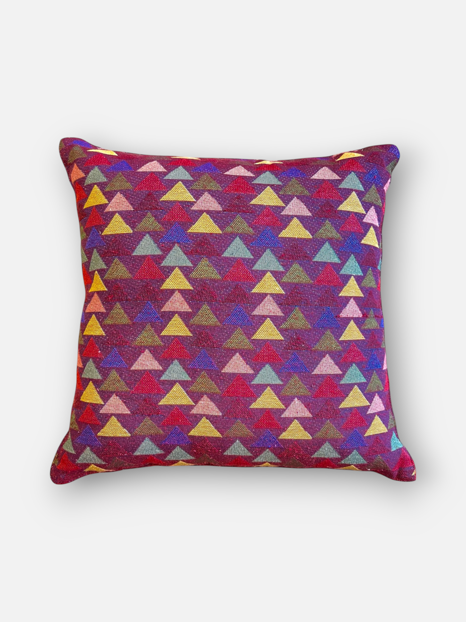 The Delmira Spectrum cushion celebrates color in motion-where every triangle pulses with vibrancy against a lush magenta. A piece that commands attention while offering timeless comfort, it’s designed for homes that embrace bold creativity and refined taste.