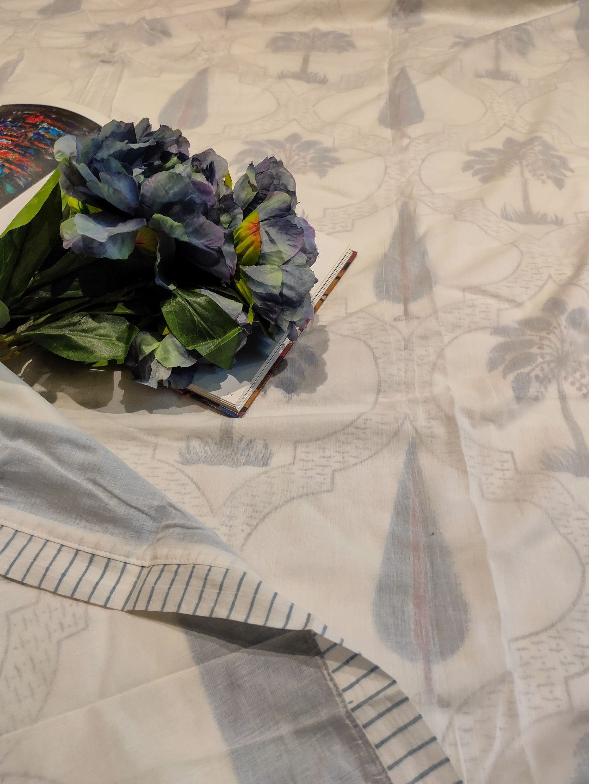 DELPHINA DOHAR FOR SINGLE BED MUTED PASTEL BLUE & WHITE 60 x 90 IN