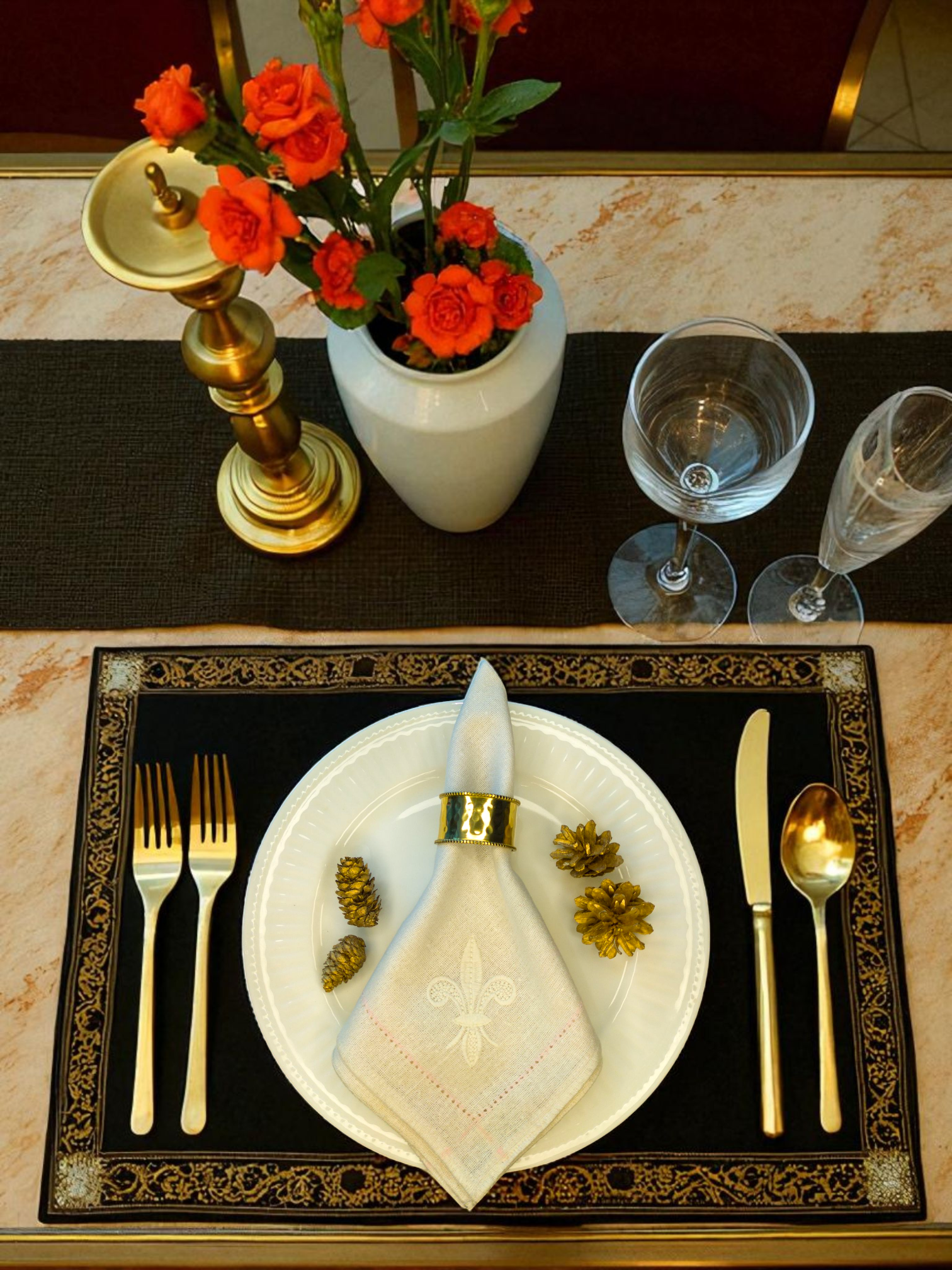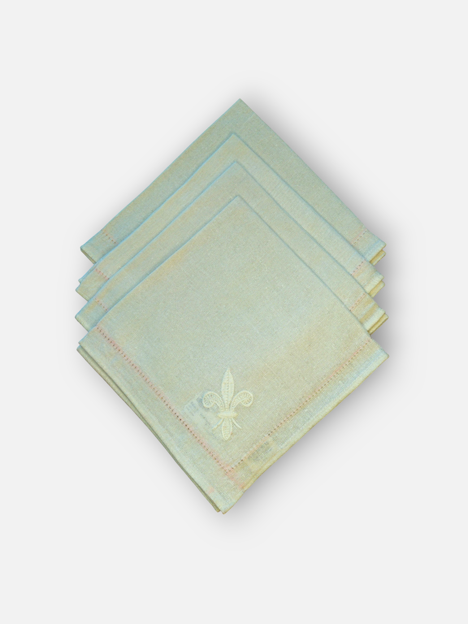 Crafted with timeless precision, this Snatural white napkin brings refined elegance to your table. The delicate fleur-de-lis embroidery whispers of French heritage, while its subtle sheen and crisp hemstitching evoke artisanal luxury. Whether part of an intimate dinner or grand soirée, it graces any setting with elevated charm. Made for those who appreciate quiet sophistication and exceptional detail.