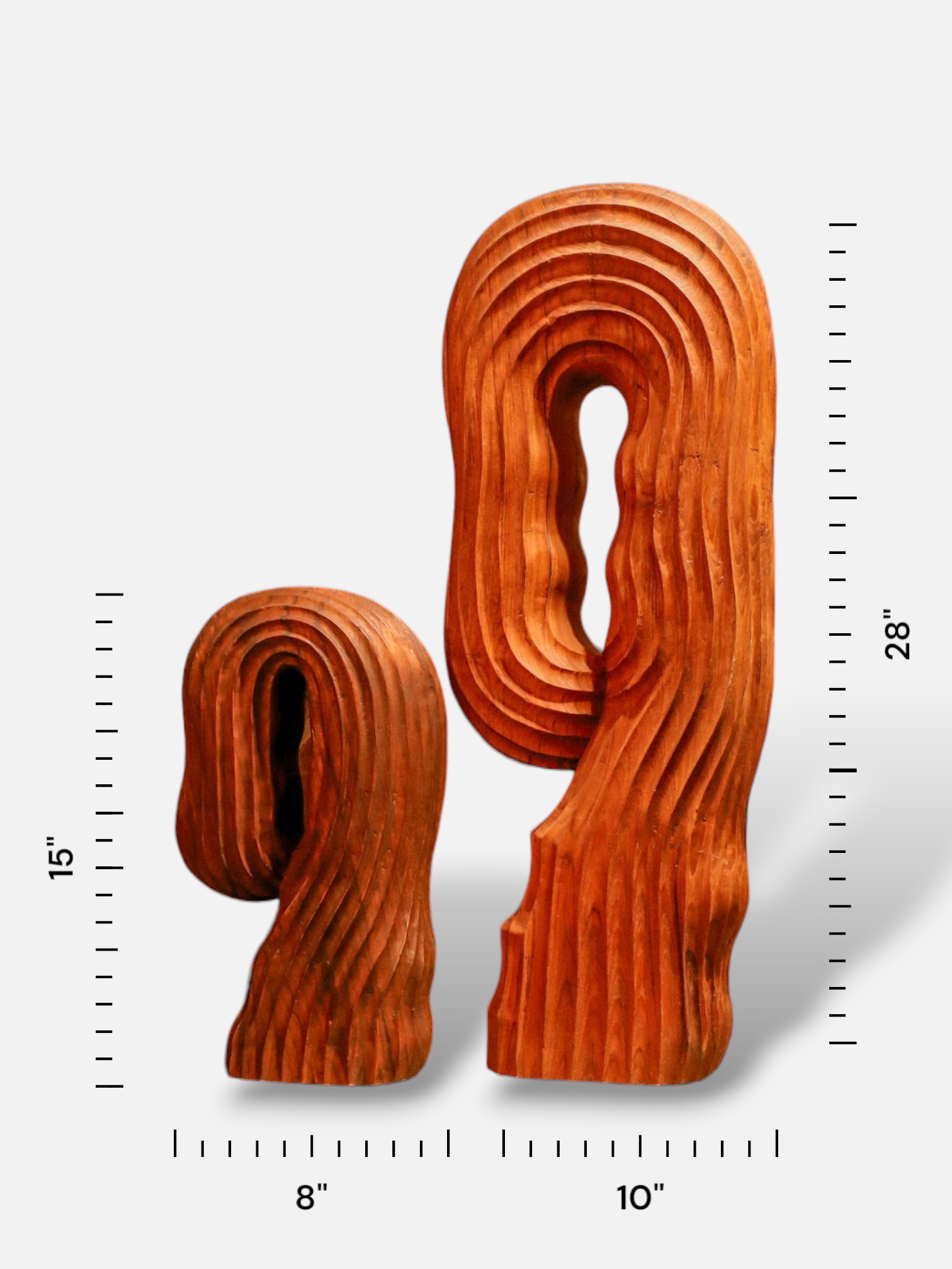 Elevate your space with this exquisite wooden sculpture, featuring intricate layered carvings that create a mesmerizing flow of organic curves. Its warm, rich hues add a touch of natural elegance, making it a timeless centerpiece. Perfect for those who appreciate craftsmanship and modern artistry blended seamlessly. This sculpture invites both contemplation and admiration in any setting.