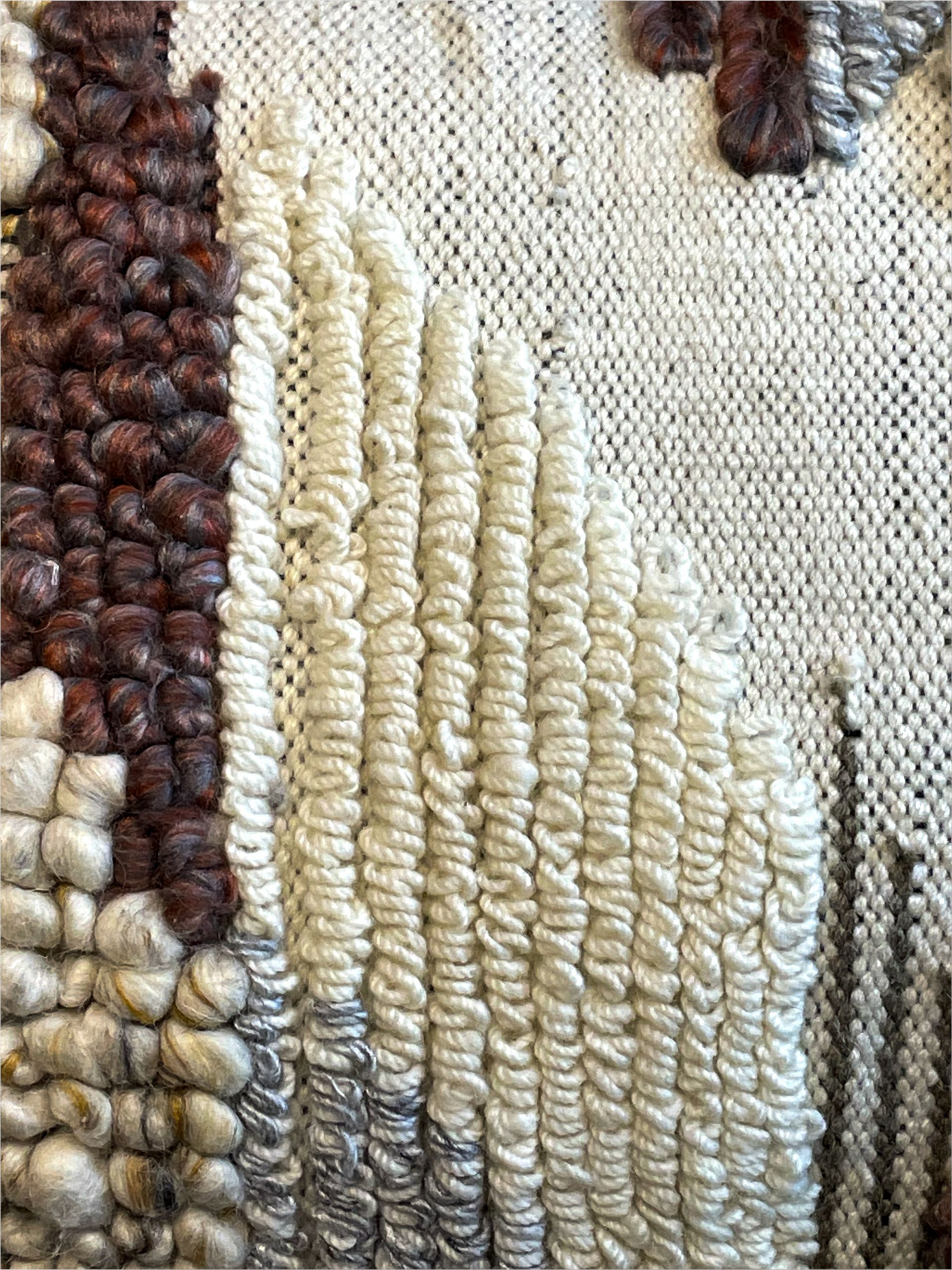 Textural artistry meets tonal harmony in this luxuriously handwoven cushion. Crafted with sculptural loops and ridges in ivory cream, earthy browns, and slate greys, it evokes a contemporary landscape in tactile form. Each detail is meticulously created by skilled artisans, transforming a simple cushion into a sensory experience. Ideal for elevating modern living spaces with artisanal elegance and understated opulence.