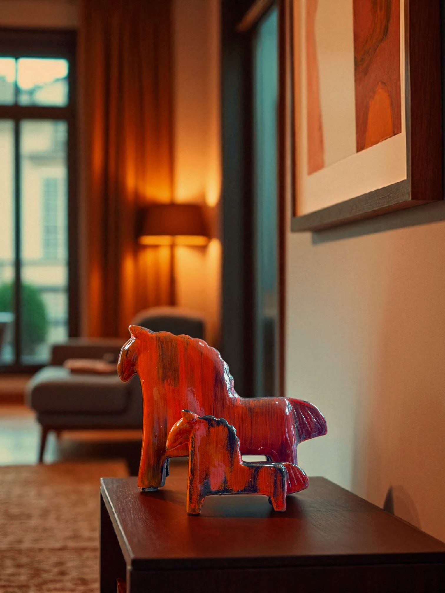 Add a touch of artisanal charm with this handcrafted resin Ashwa sculpture, echoing strength and grace in every curve. Featuring a glossy finish with deep crimson and burnt sienna undertones, each piece captures a sense of motion and spirit. Perfect as a statement décor accent or a symbolic gift of power and vitality. Bring home this striking tribute to equine beauty and craftsmanship.