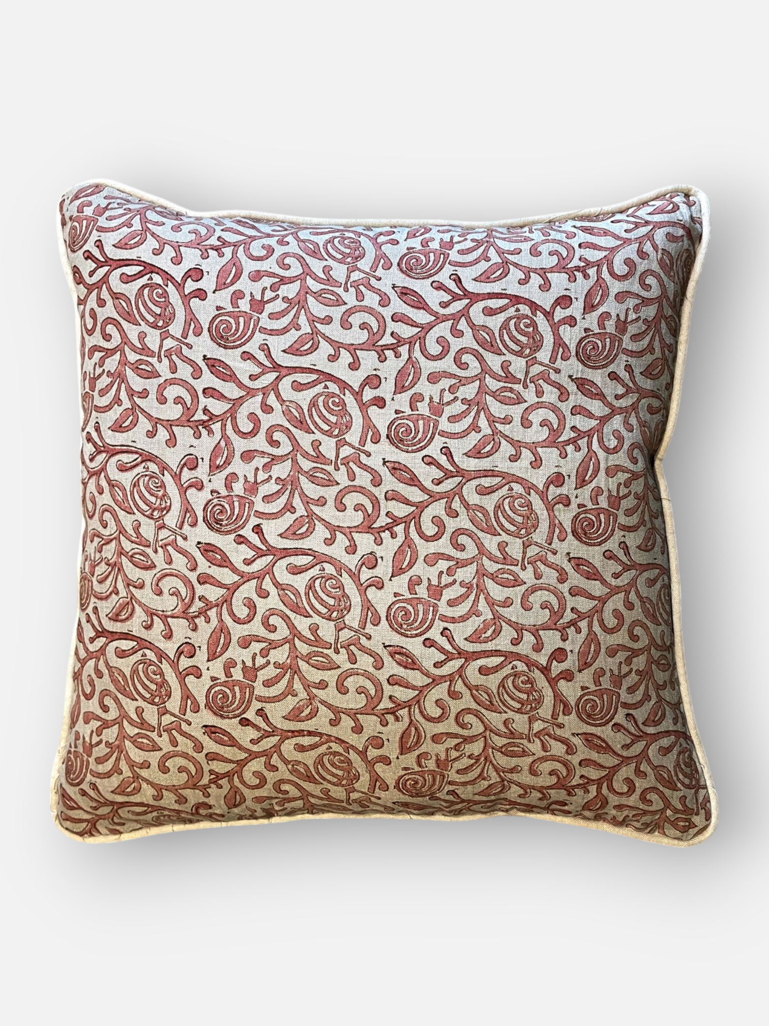 Intricately embroidered in rich muted rosewood red, this cushion brings a whisper of timeless artistry to any refined interior. The swirling botanical motifs evoke a classic elegance, delicately stitched onto a soft natural beige canvas. Each piece is a celebration of heritage craftsmanship, thoughtfully designed to harmonize with both contemporary and vintage aesthetics. Perfect for the discerning eye seeking luxurious detail in every thread.