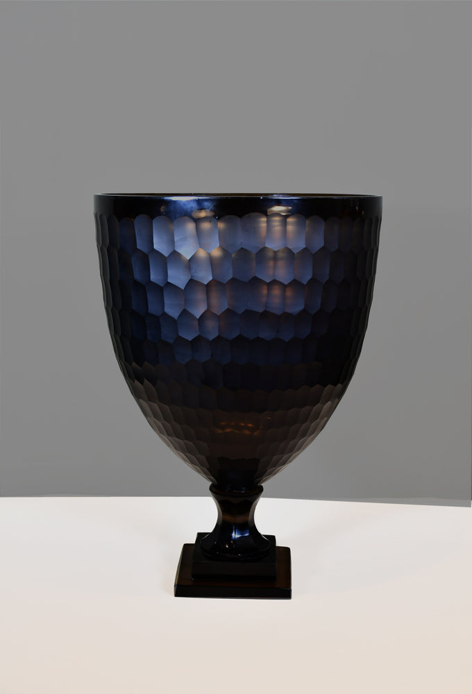 Accented with honeycomb pattern, this black finish glass flower vase will bring classical character and ambience to the table setting. Supported by a sturdy translucent base, this large flower vase is a lavish addition to mantel, console and tabletops.