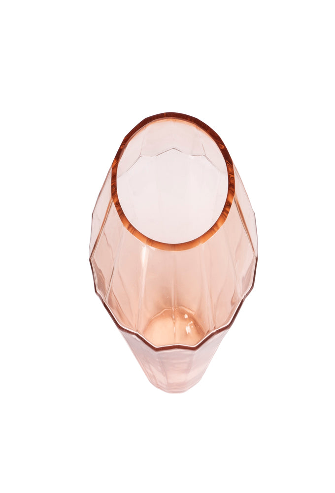 Display flowers in a one-of-a-kind handmade fixture with cutwork. The pink color adds texture to the geometric pattern.