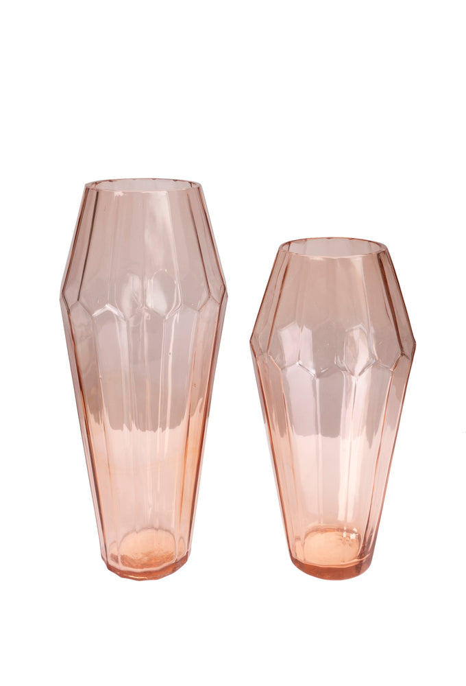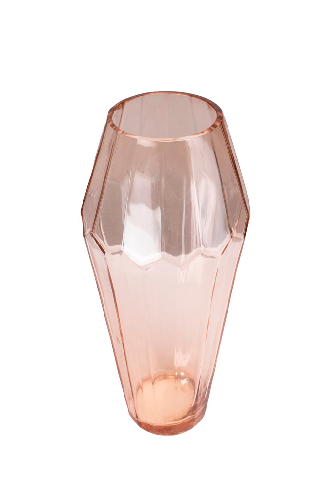 Display flowers in a one-of-a-kind handmade vase with cutwork. The pink color adds texture to the geometric pattern.