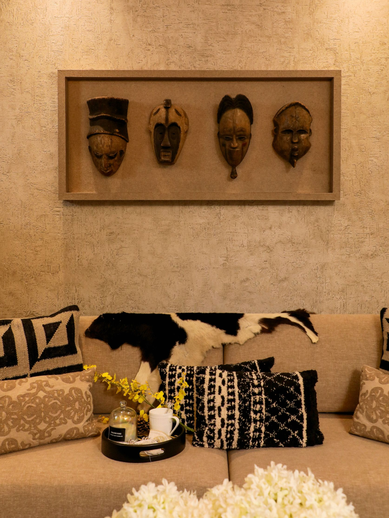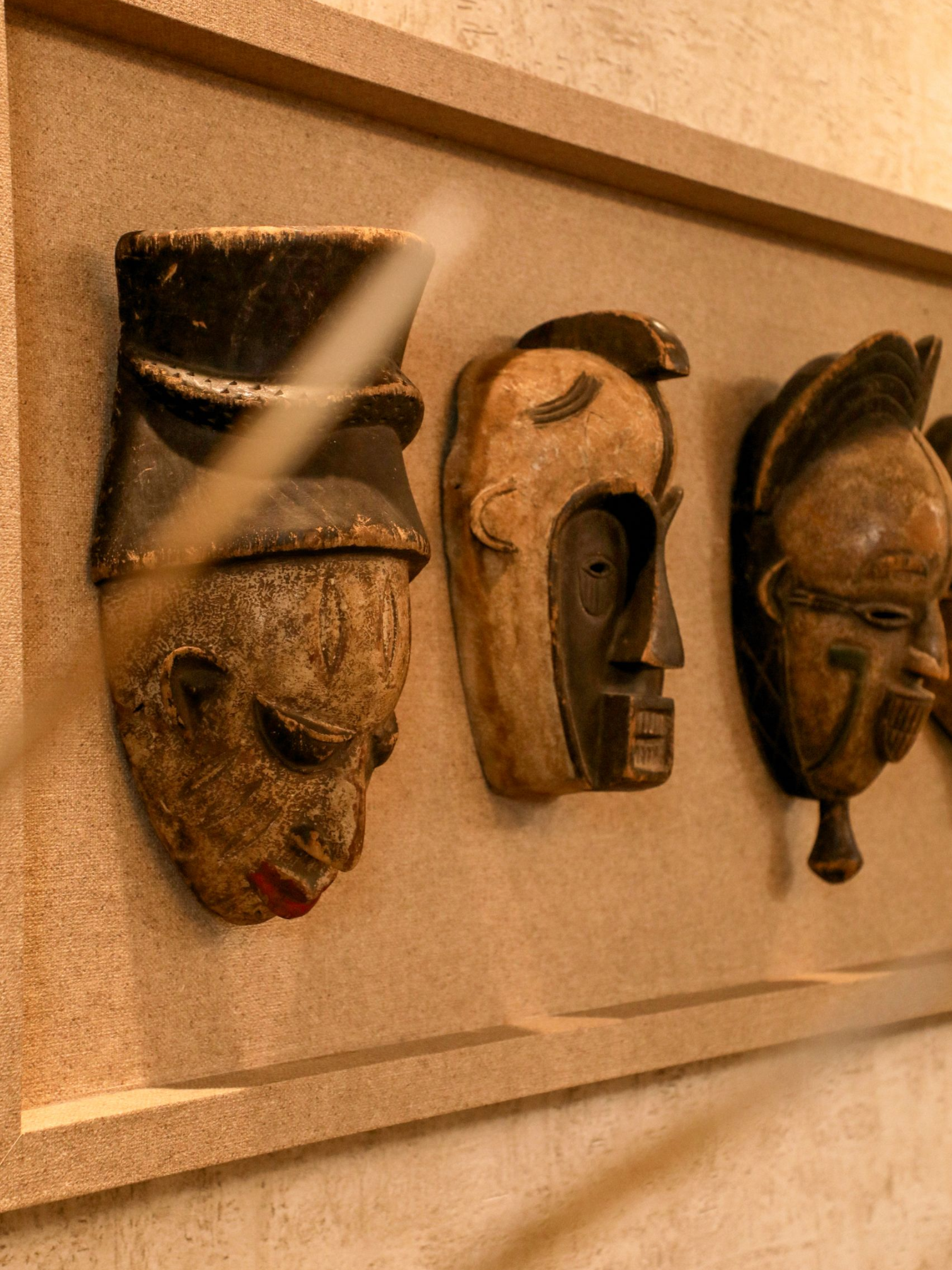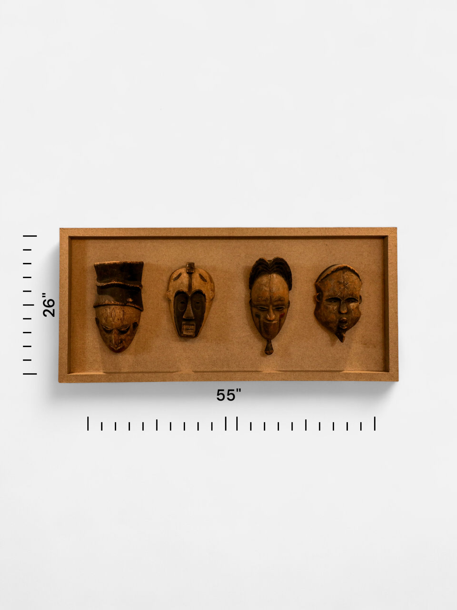 Bring timeless culture and elegance into your space with this handcrafted mural art featuring four intricately carved tribal masks. Framed in a minimalist wooden box, each mask tells a unique story rooted in ancestral tradition. The earthy tones and textured finishes create a warm, grounding presence perfect for contemporary or eclectic interiors. This piece is not just wall decor, it’s a conversation starter.